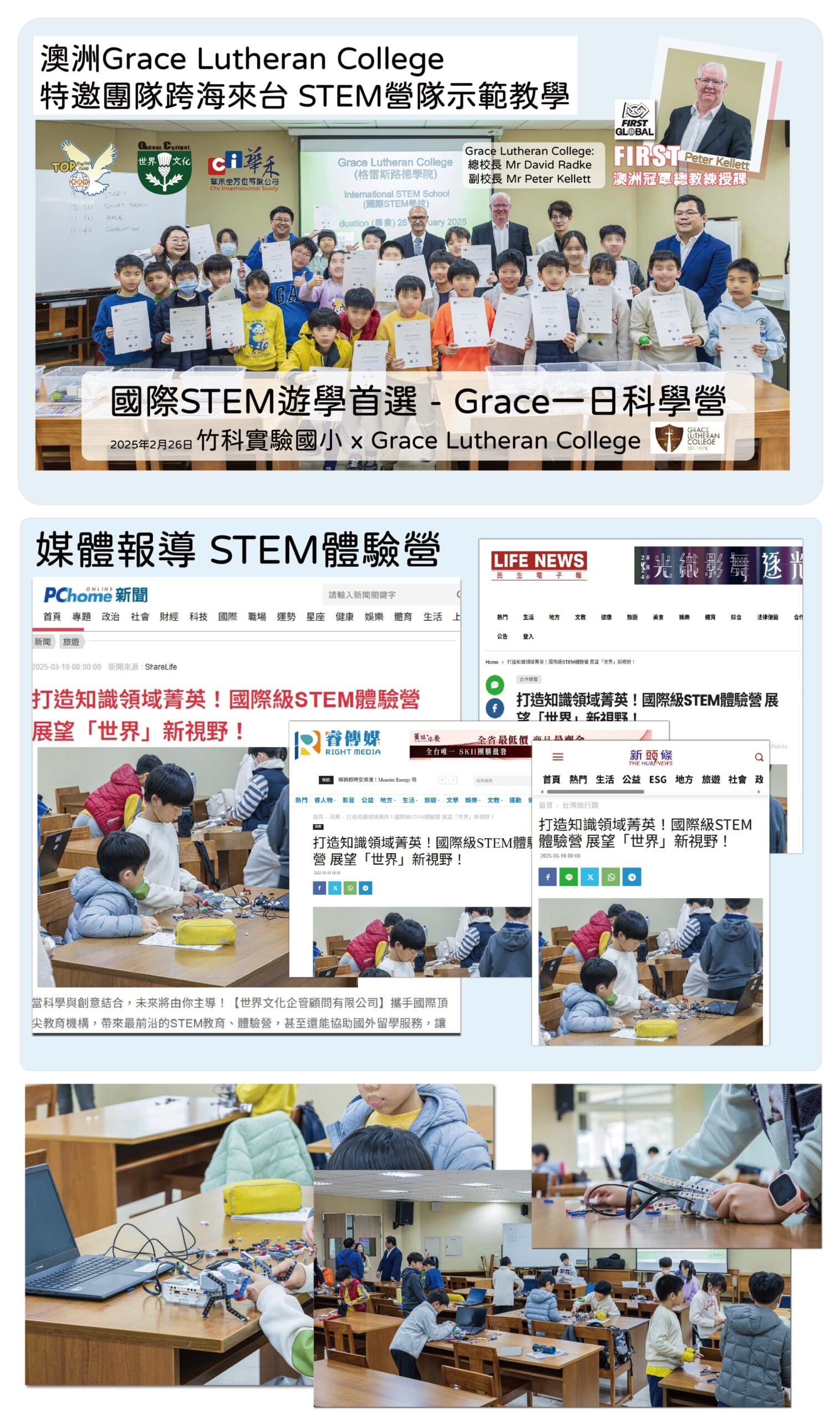 在澳洲頂級私校上課、澳洲冠軍總教練帶領實做STEM Robot、用英文把作品講出來。
